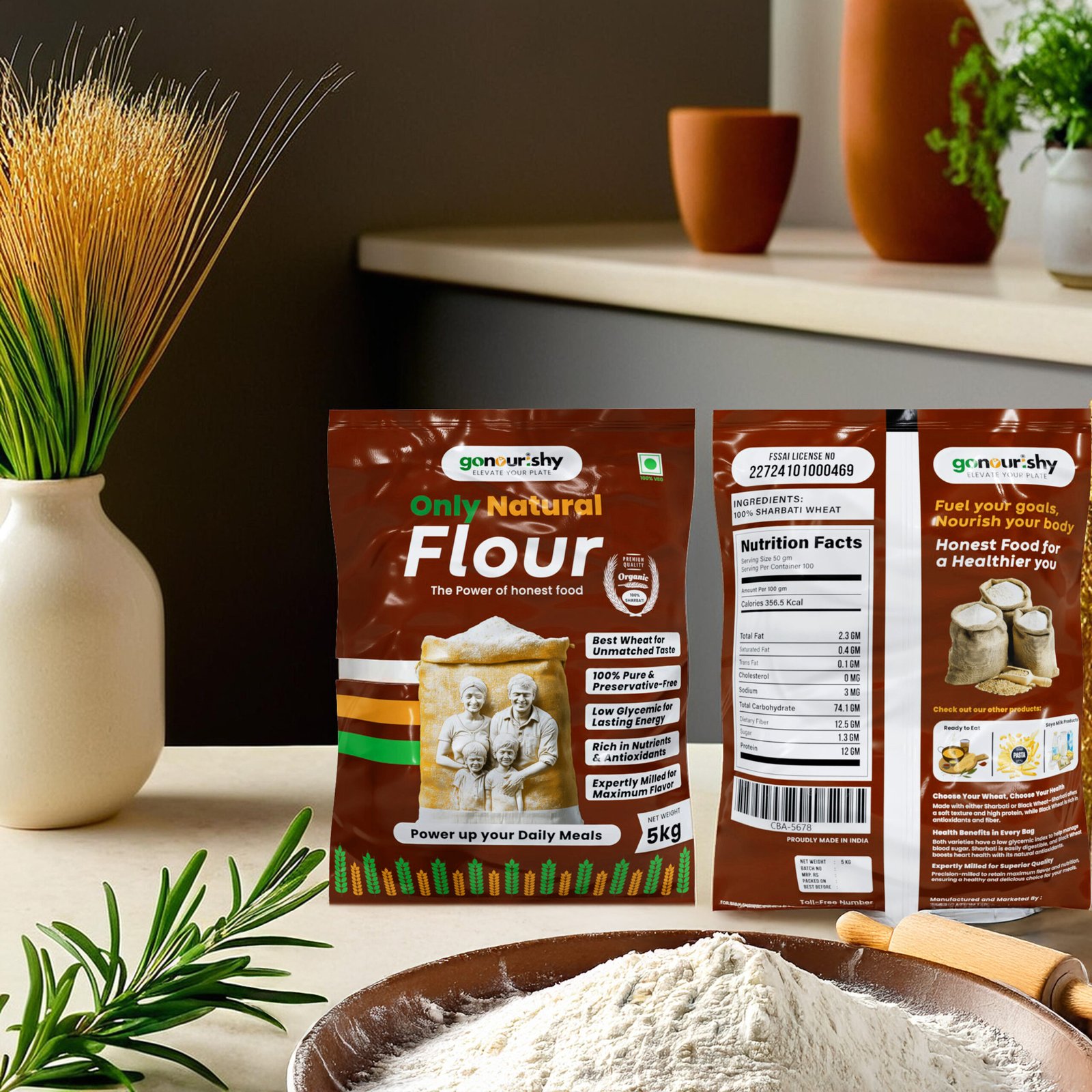 “100% Pure Sharbati Wheat Flour – The Golden Wheat of MP”