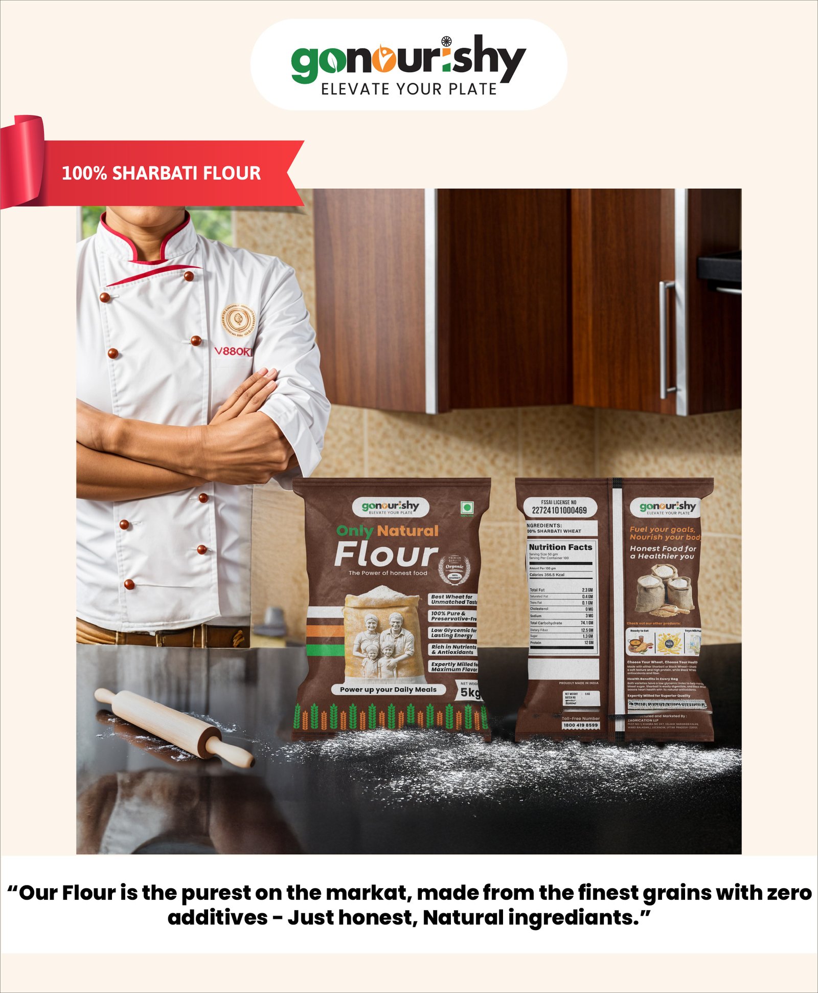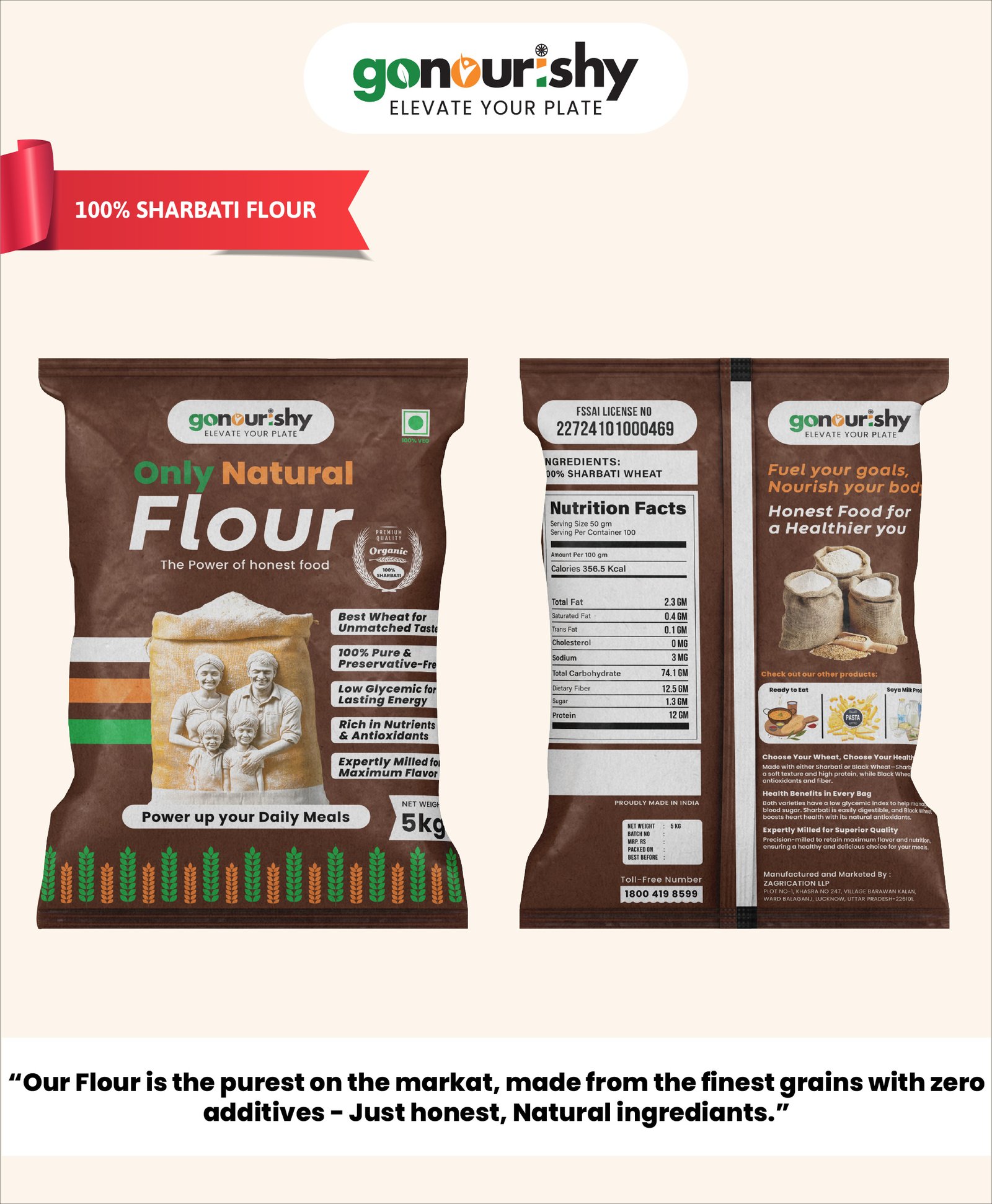 - Pure and Natural – Made from 100% pure Sharbati wheat, with no additives or fillers.