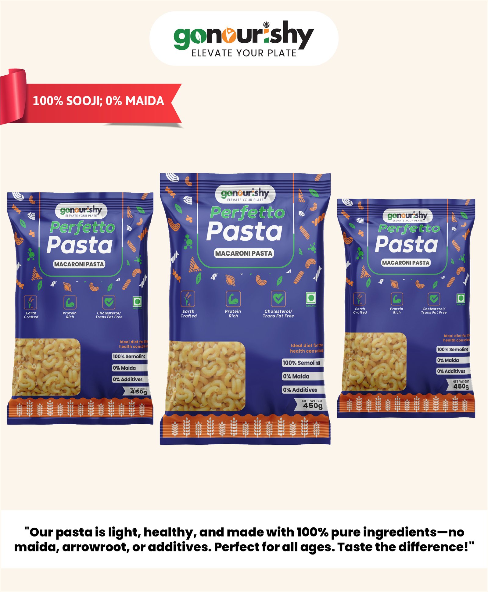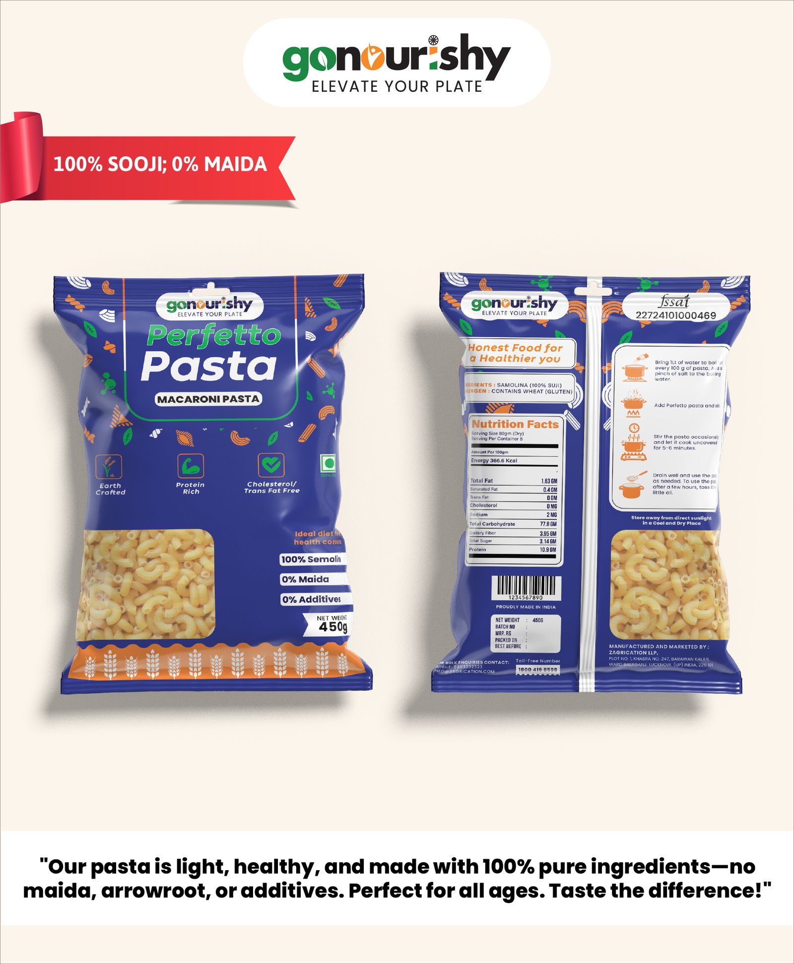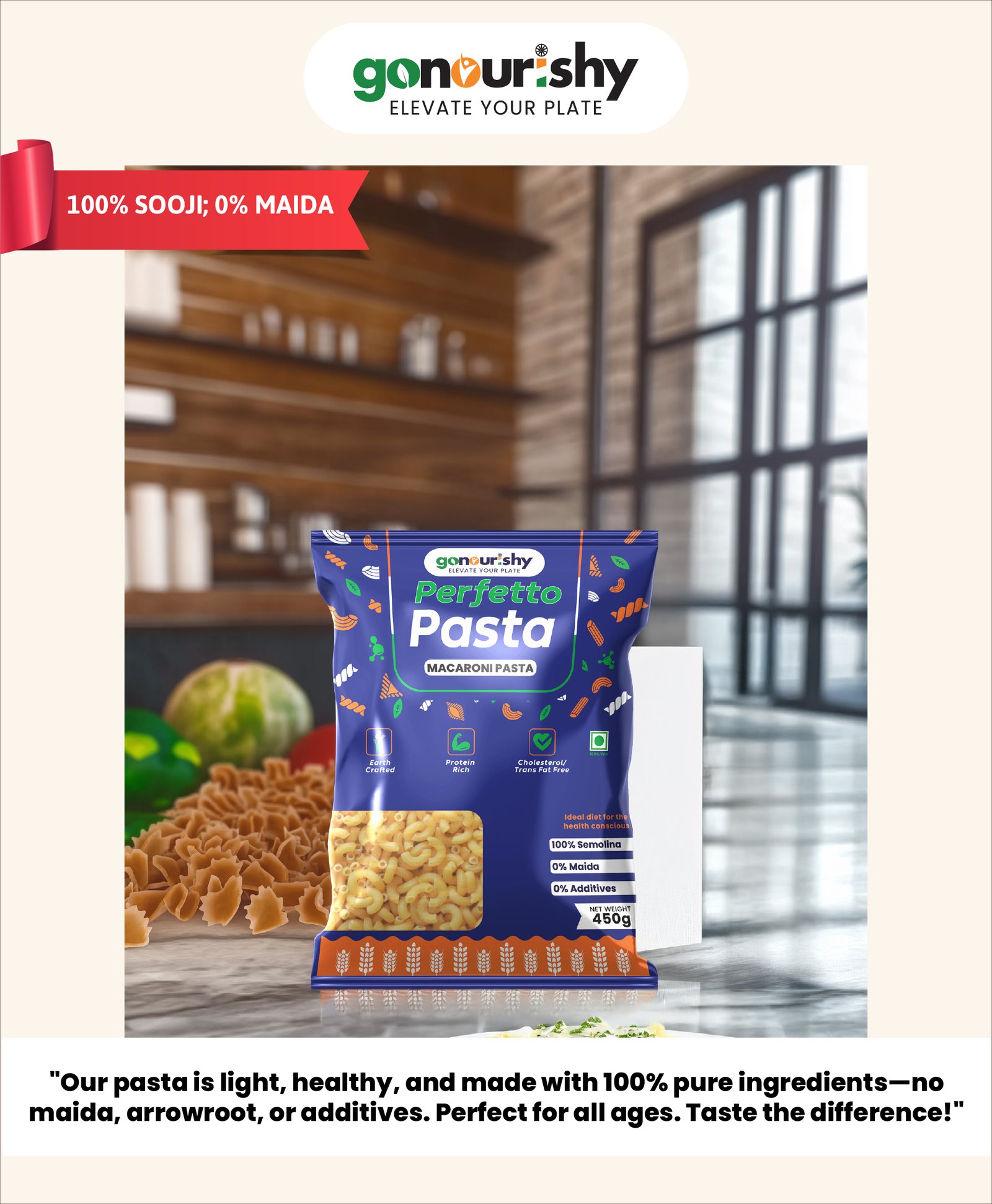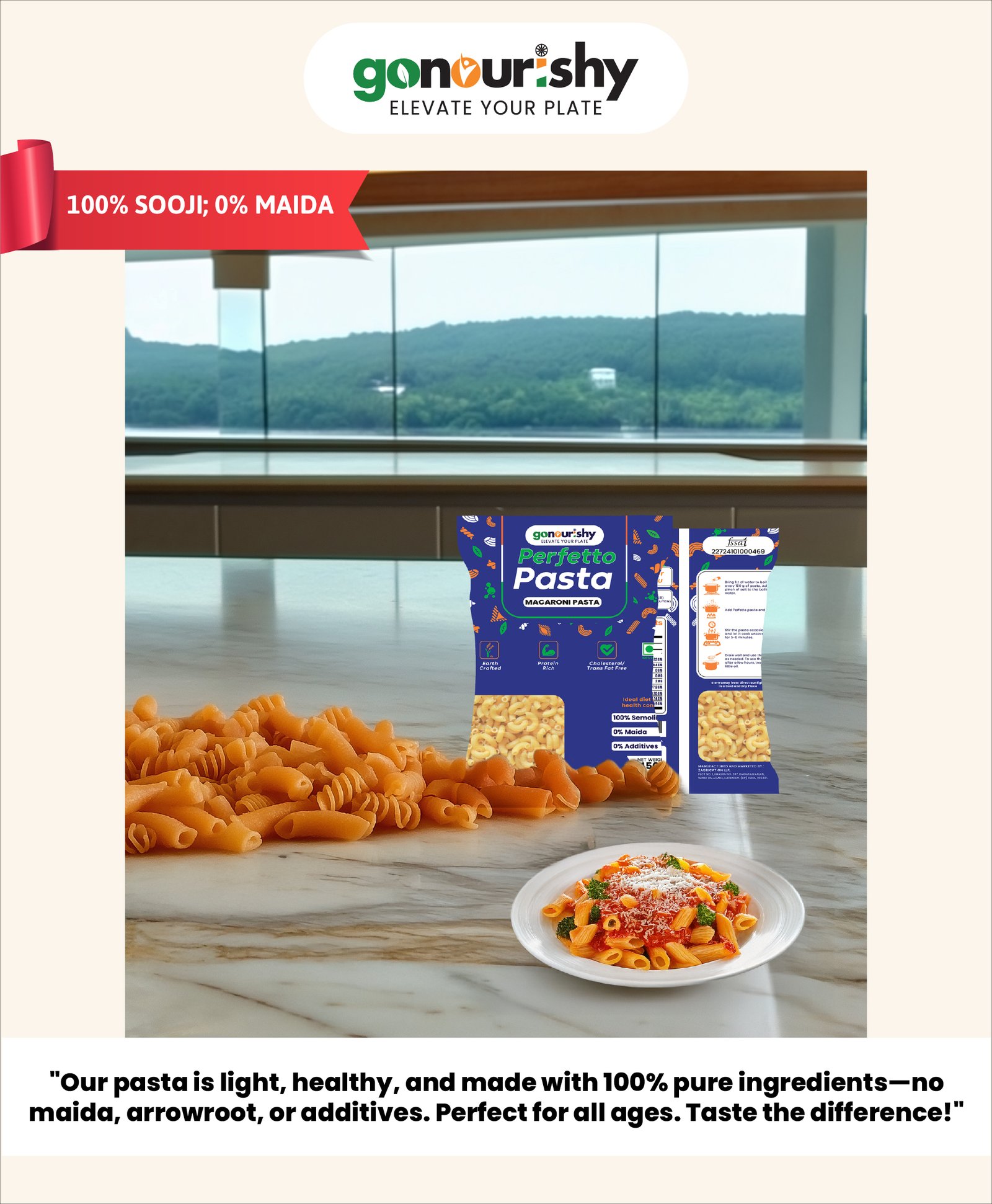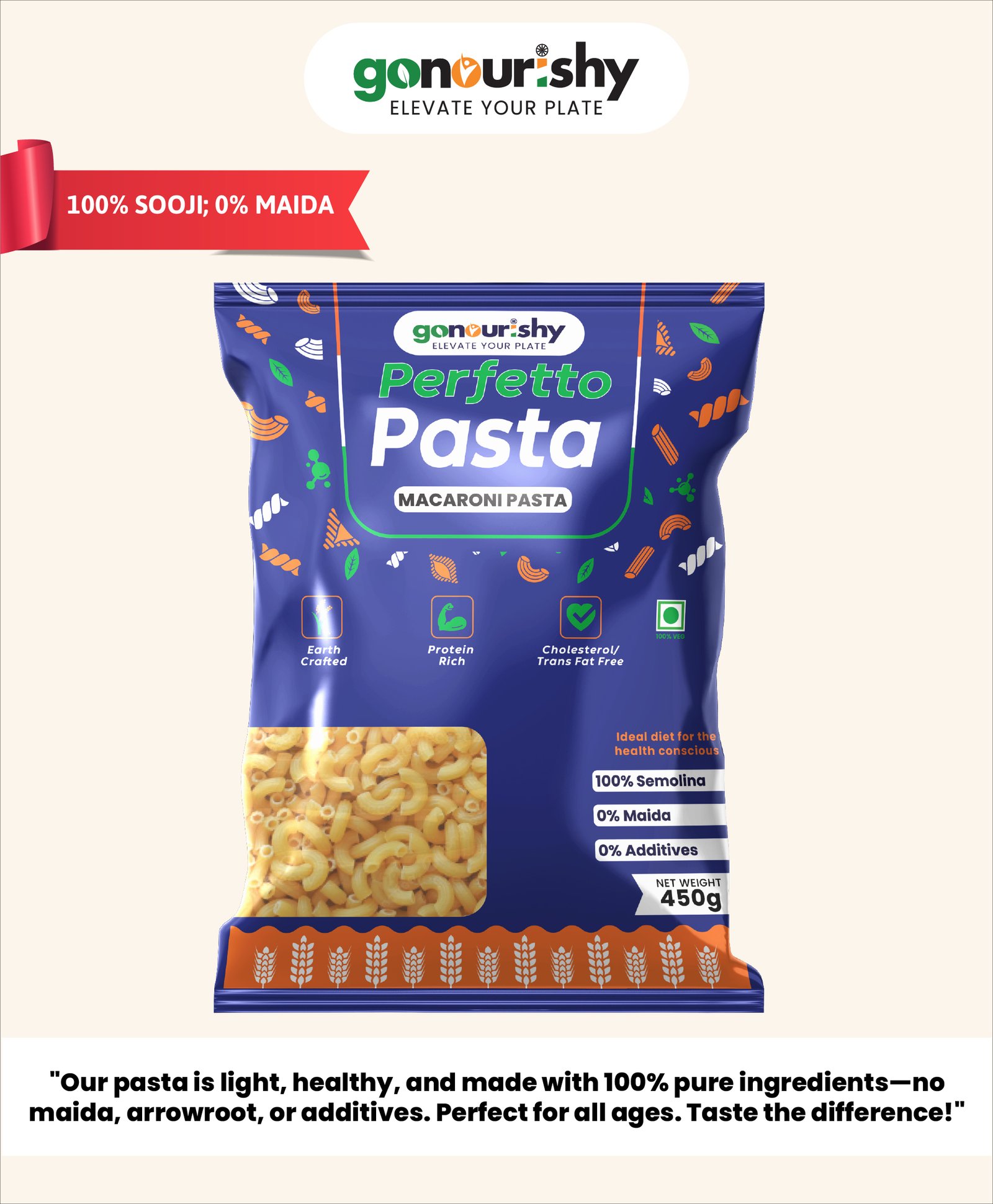 “100% Sooji Macaroni – Light, Comforting, and Completely Natural”